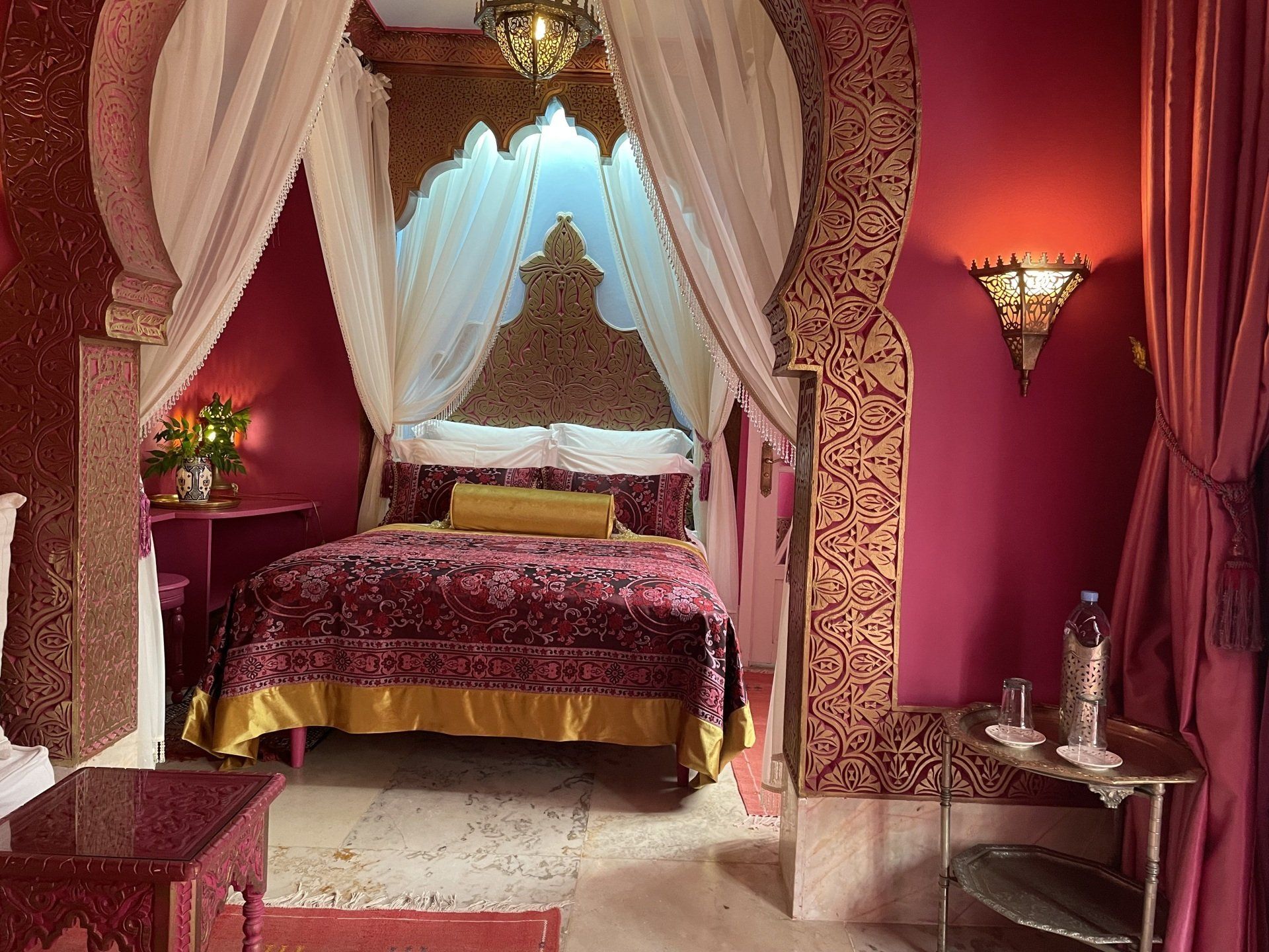 Риад «Dar El Malaika» состоит из 5 различных люксов, но все они одинаковы по элегантности и изысканности. Расположенные на уровне сада или на первом этаже риада, люксы со вкусом оформлены и спроектированы так, чтобы гарантировать вам высококлассный, экзотический и расслабляющий отдых. Прежде чем отправиться в риад, насладитесь пеной в своей просторной ванной комнате. Этот момент принадлежит вам. Массаж доступен по запросу. Пожалуйста, свяжитесь с ресепшеном.